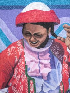 At 14,000 feet in the Andes of Peru, these weavers from the village of Acopia were taking the photographer Joe Coca to document one of the elders at a sacred lake up in the mountains. While waiting for potatoes to be roasted for lunch, they decided to start up a game of soccer. No brand name soccer apparel, but there were beautiful, traditional textiles to score a goal in. I was captured, captivated, entranced, enthralled by their unbridled joy. That is the human story I wanted to tell…..pure delight in the moment. Such exuberance in being alive.