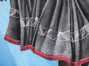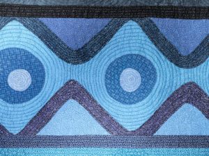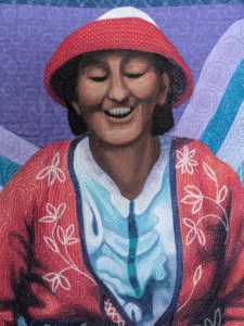 Hand painted cottons, raw edge applique, hand embroidery, bamboo batting, free motion stitched.