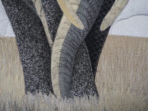 Hand painted cottons, raw edge applique, machine stitched and quilted, thread painted grasses.