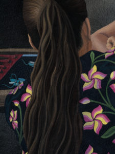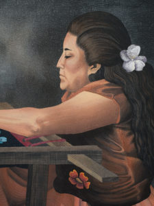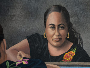 In the quiet village of Santa Rosa in Oaxaca, Mexico, all the women, and some of the men, embroider blouses and skirts of velvet with hand-stitched flowers. They gather around tables, chatting back and forth as they create a style of dress also used by Frida Kahlo. Flowers continue today to dance across the rich clothing on the solid women of this land.